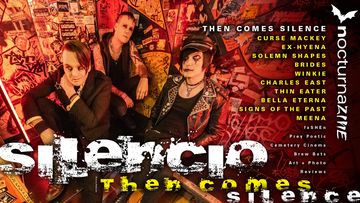 Gracing the cover of “09: Silencio” is Then Comes Silence! Features include Ex-Hyena, Solemn Shapes, BRIDES, WINKIE, Charles East, Thin Eater, Bella Eterna, Signs Of The Past, Meena, and more. Sections include faSHEn (by Anastasia Du Noire of Cemetery Sex), Prey Poetic (by Kaytee Thrun), Cemetery Cinema (reviews by Hororhaus), Beer Bats (reviews by Tokyo Teens), Art + Photo, and music Reviews.